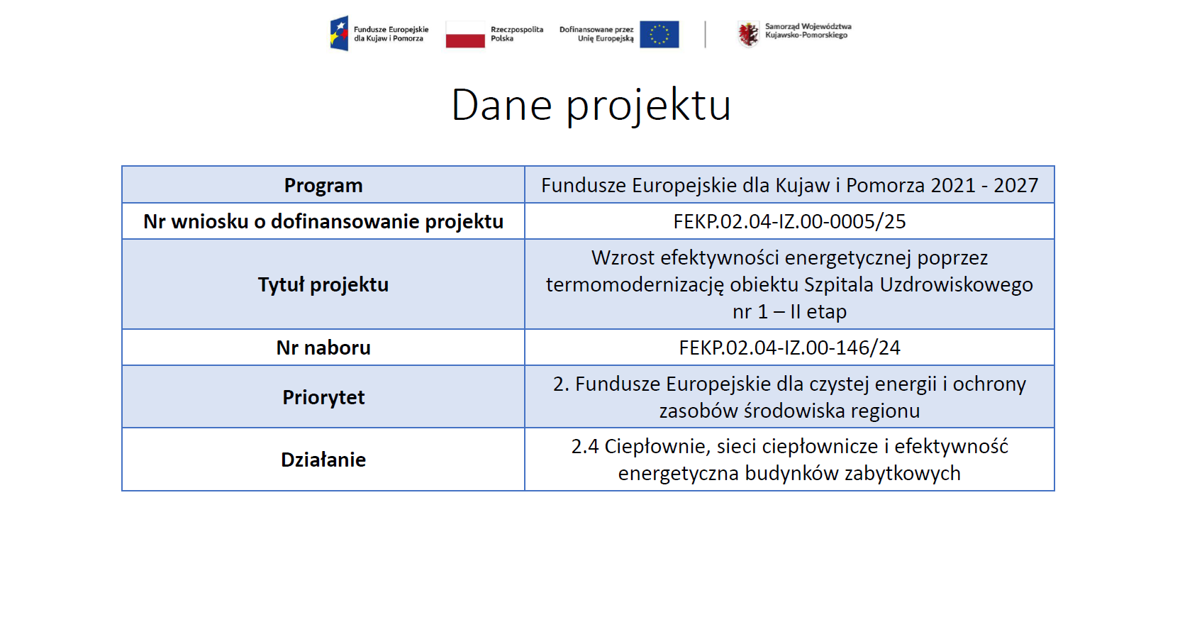 Projekt realizowany przez Uzdrowisko Ciechocinek S.A. obejmuje drugi etap termomodernizacji budynku Szpitala Uzdrowiskowego nr I przy ul. Armii Krajowej 6 w Ciechocinku. Obiekt, znany historycznie jako Łazienki IV, to zabytkowa część kompleksu wpisana do rejestru zabytków (nr A/1463), pełniąca funkcję szpitala uzdrowiskowego i sanatorium w ramach publicznego systemu opieki zdrowotnej finansowanego przez NFZ.